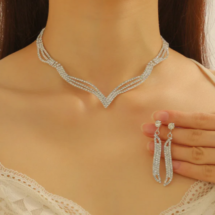 Σετ με κολιέ με κρόσια στρας και σκουλαρίκια