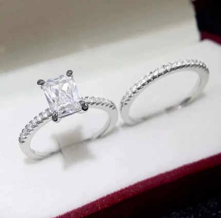 Σετ με princess μονόπετρο δαχτυλίδι και βέρα