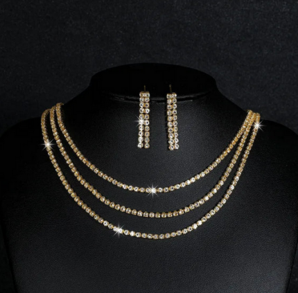 Σετ με τριπλό κολιέ με χρυσά στρας και σκουλαρίκια