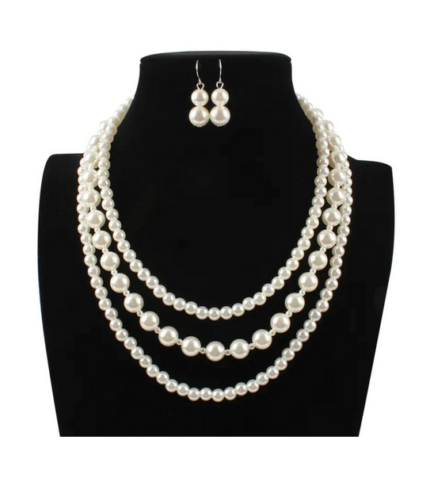 Σετ με τριπλό κολιέ με πέρλες και σκουλαρίκια