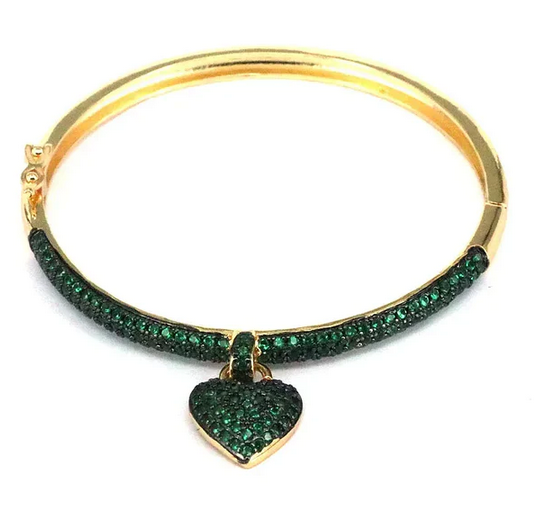 Βραχιόλι χειροπέδα με πράσινα zircon και καρδιά