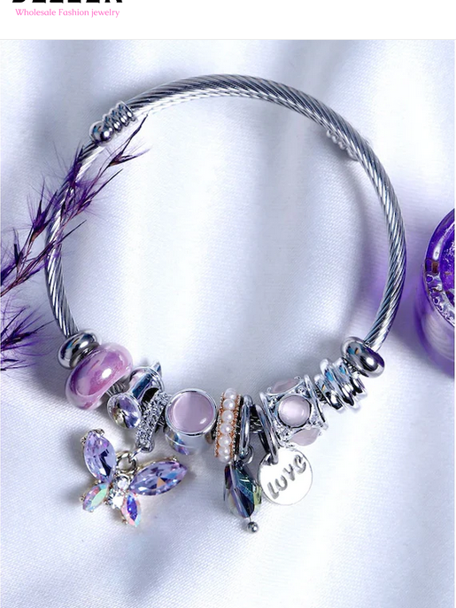 Αρχική σελίδα Κοσμήματα Βραχιόλια Βραχιόλι bangle με μωβ πεταλούδα