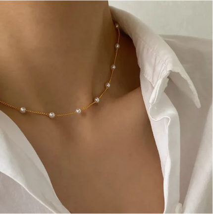 Κολιέ τριπλό ορειχάλκινο με πέρλες