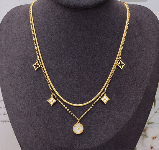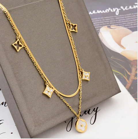 Διπλό κολιέ από ατσάλι με λευκά και χρυσά σχέδια