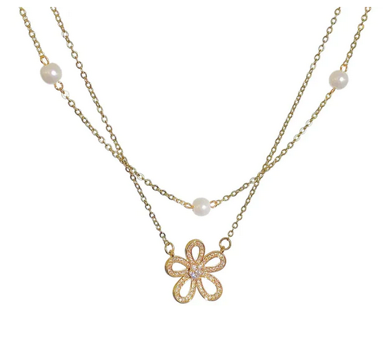 Κολιέ με πέρλες και λουλούδι