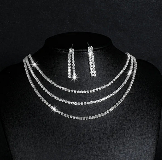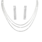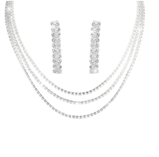 Σετ με τριπλό κολιέ με ασημί στρας και σκουλαρίκια