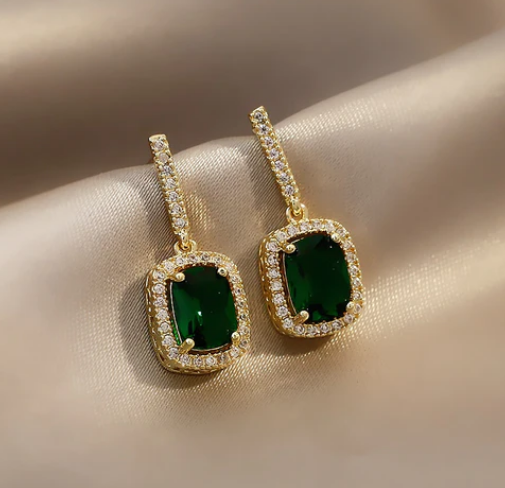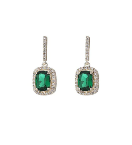 Σκουλαρίκια κρεμαστά με πράσινο κρύσταλλο