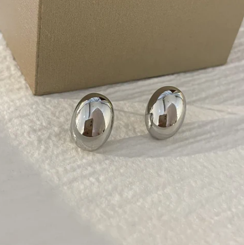 Σκουλαρίκια οβάλ από επαργυρωμένο ορείχαλκο σε ασημί και χρυσό