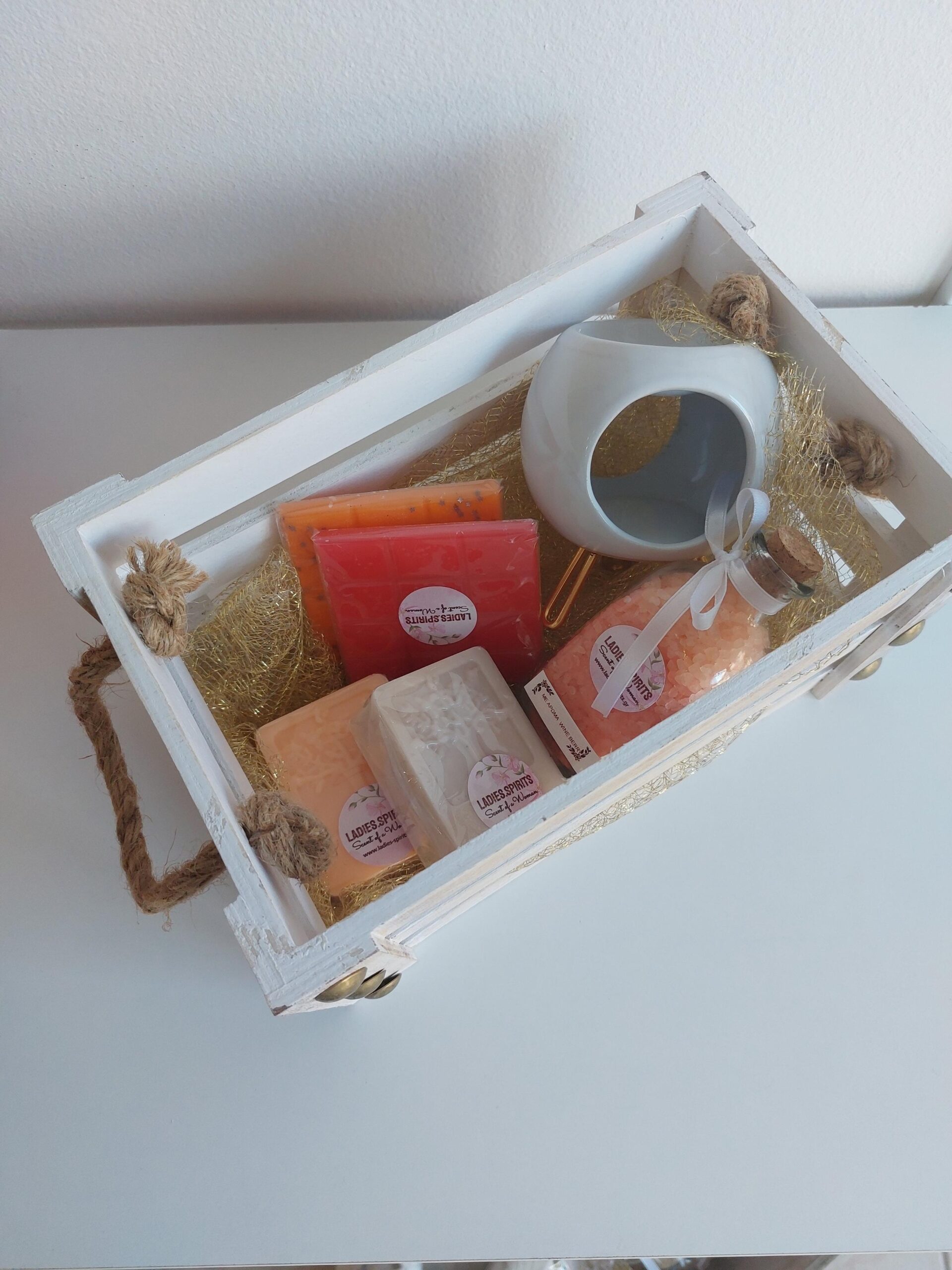Σύνθεση δώρων. Αποτελείται από wax melts, άλατα μπάνιου, σαπούνια και αρωματιστή σε υπέροχα αρώματα.