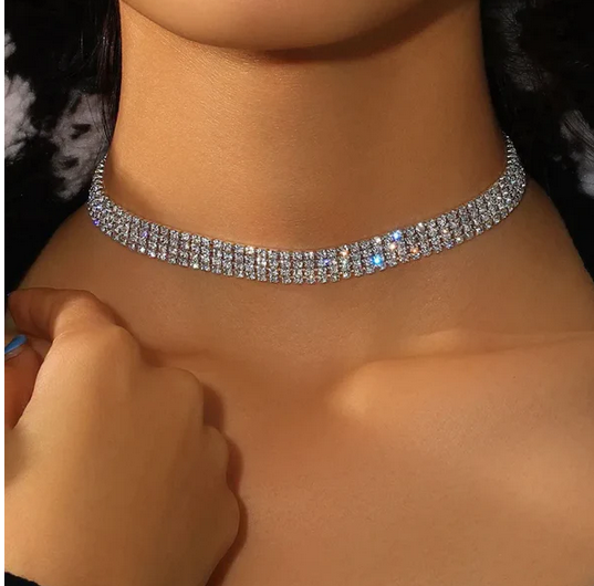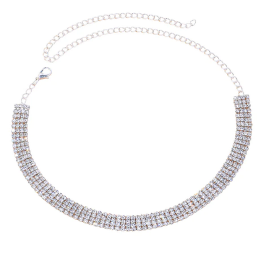 Τσόκερ με τετραπλή σειρά ασημί στρας